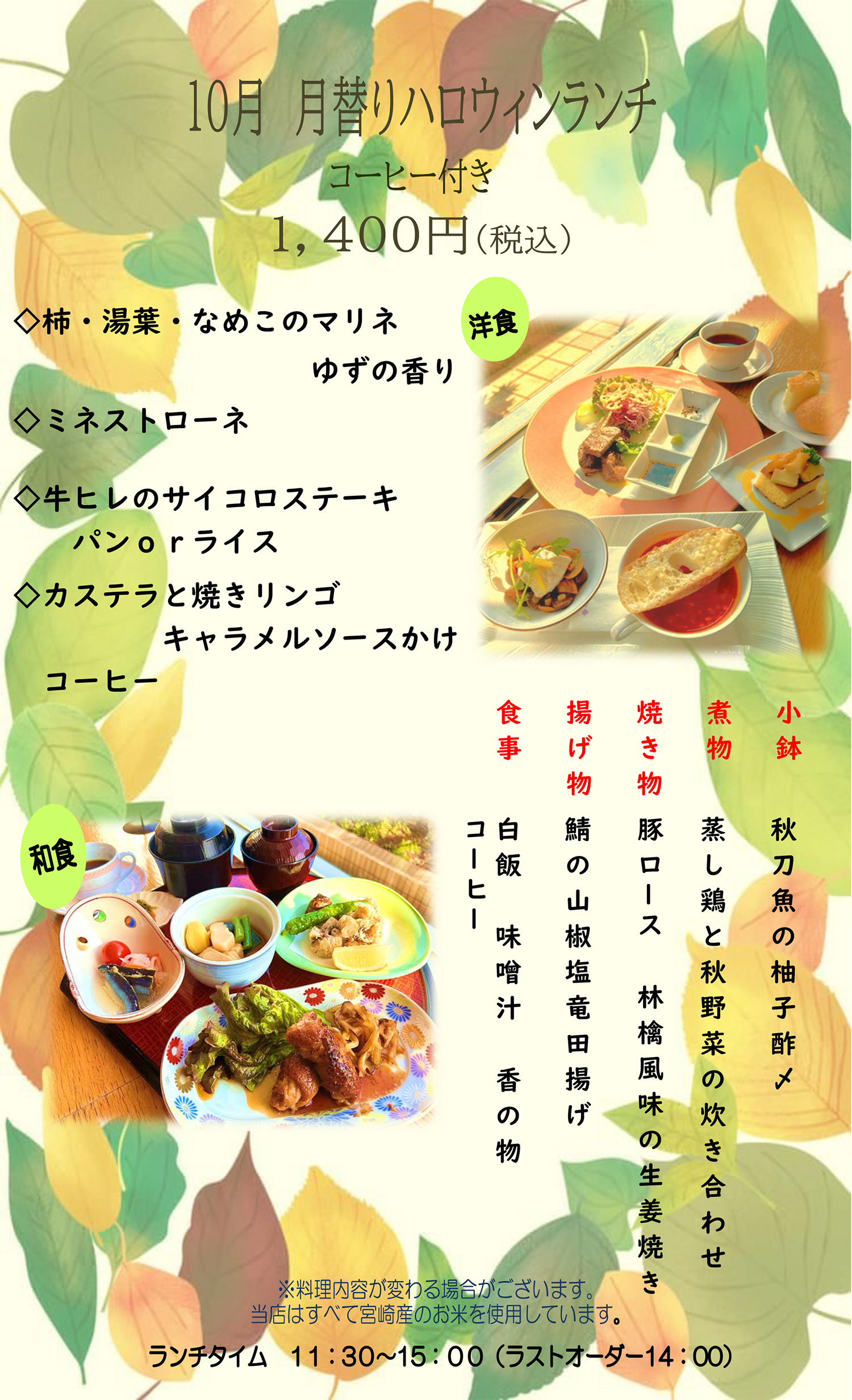 【レストラン】10月の月替り ハロウィンランチ《洋食 & 和食》
