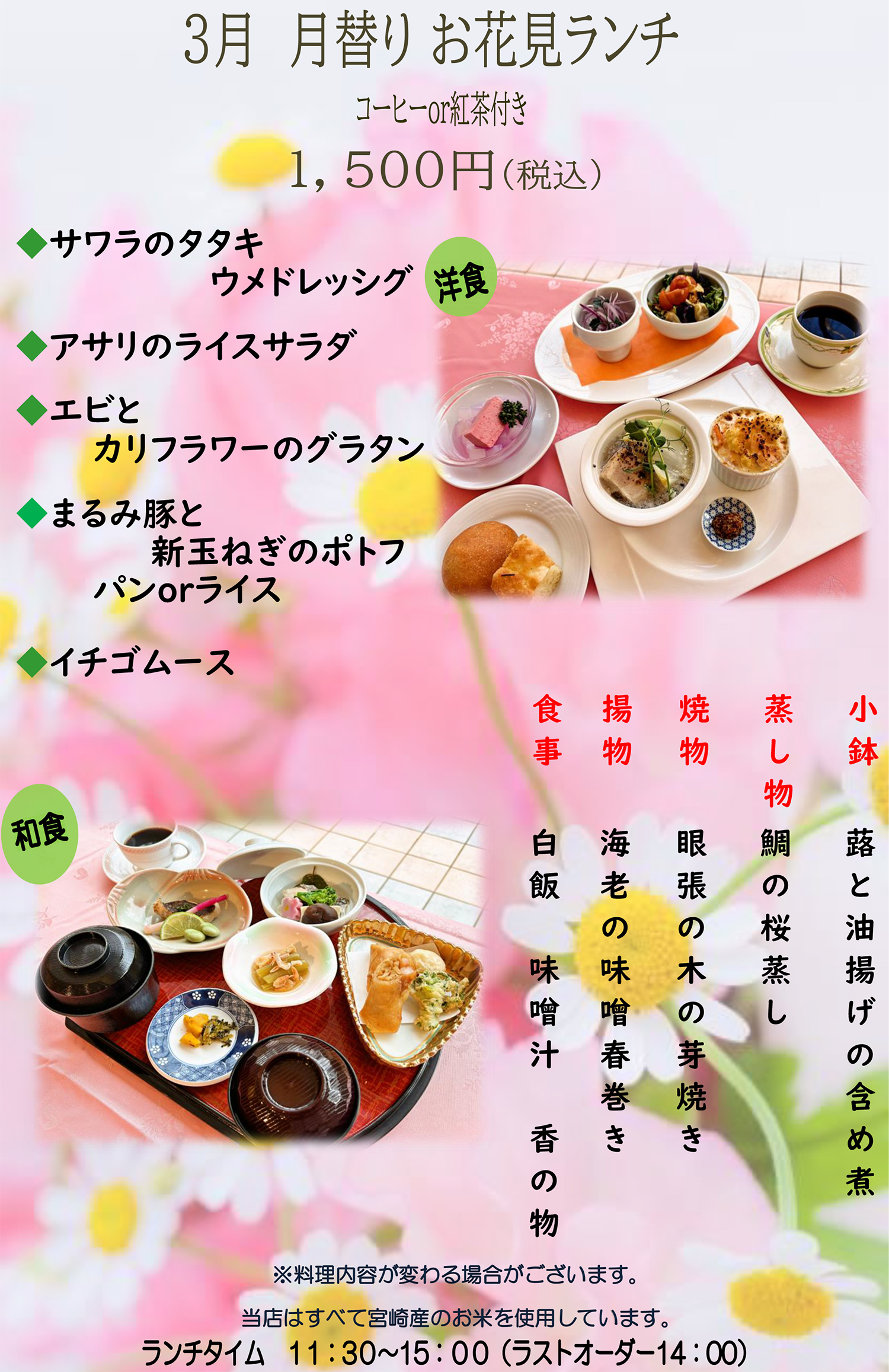 【レストラン】3月の月替り お花見ランチ《洋食 & 和食》