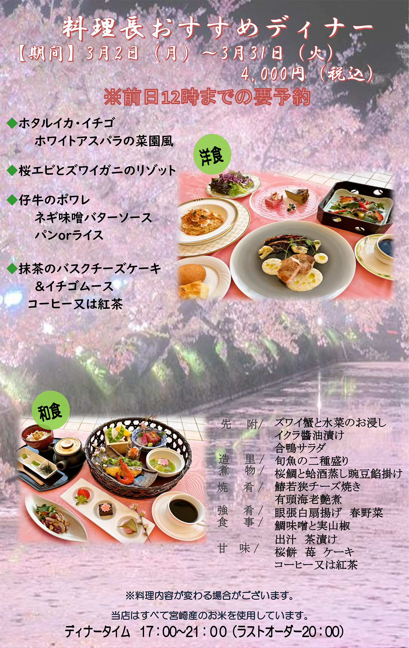 【レストラン】3月の料理長おすすめディナーコース《洋食 & 和食》