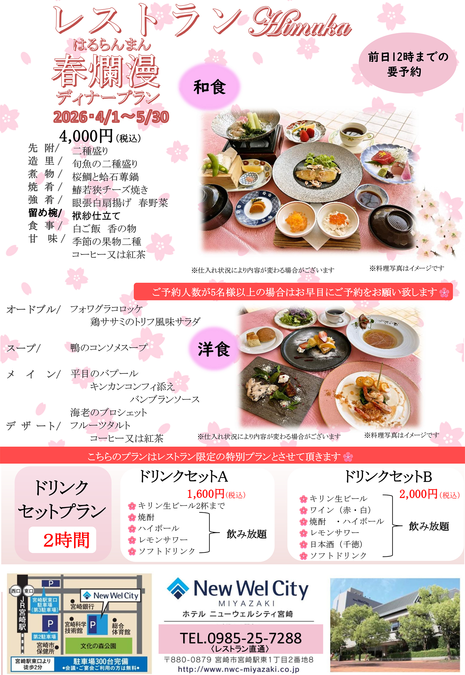 【レストラン】4月の春爛漫ディナープラン《洋食 & 和食》